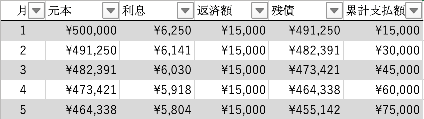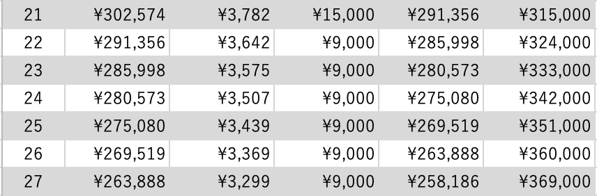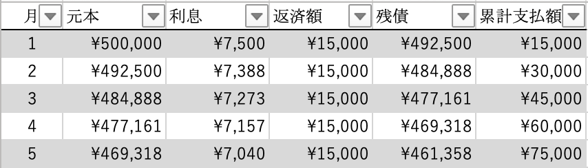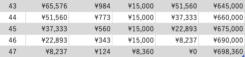 序盤ではどちらも毎月15,000円の支払いをしています。