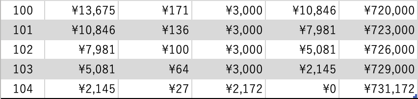 | 返済回数(期間) | 104回(8年8ヶ月) | 47回(3年11ヶ月) |